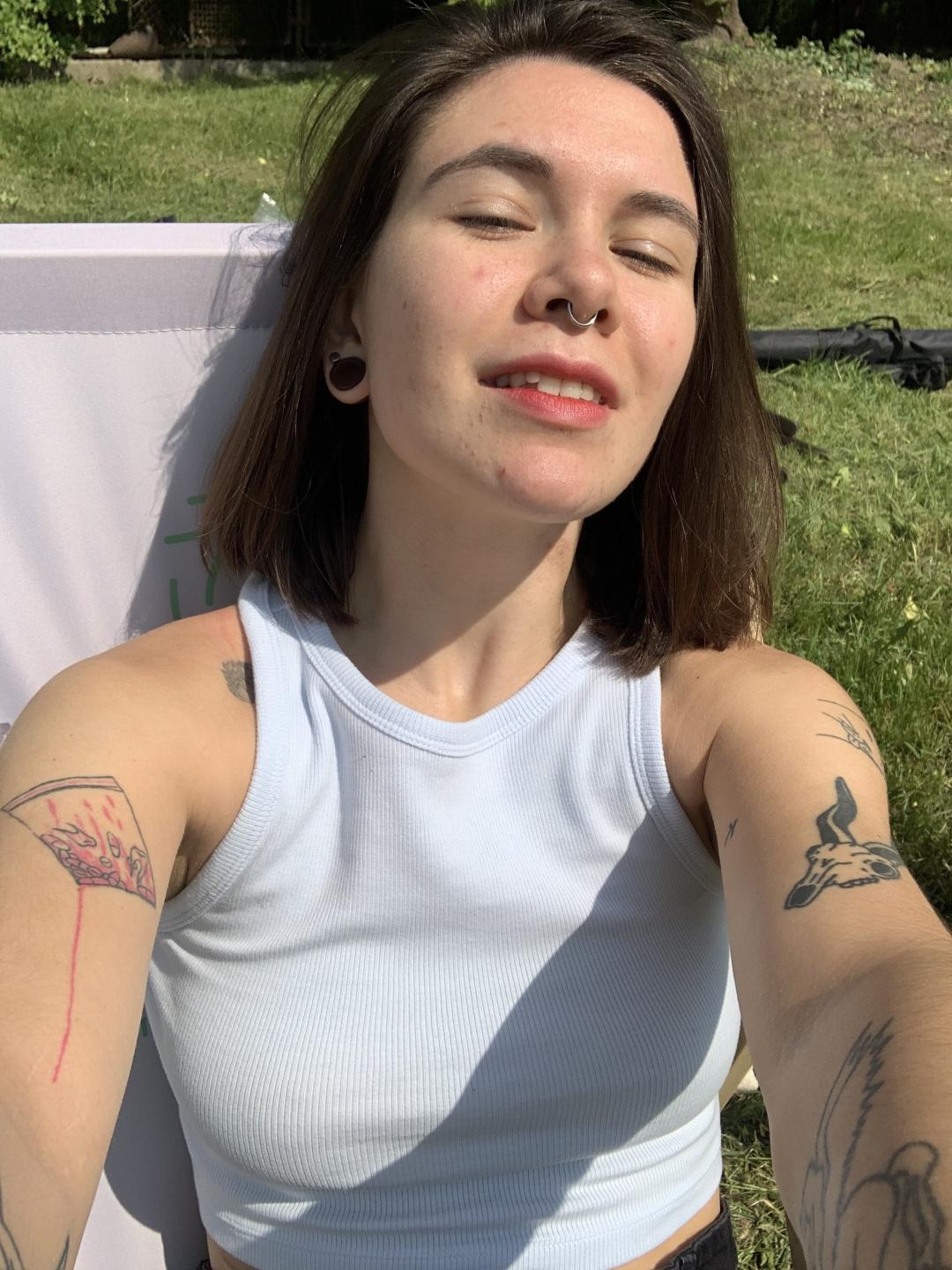 Hey! I am Olivia and I am an artist! So my body is a work of art, u can see different tattoos on it so let's ask me about the meaning - u ll be surprised :) Also, I am interested in reading books, my fav is "Alice in Wonderland" because I can find there a lot of things to inspire and new paintings. On this site, I want to find new friends and probably something more hah I really love to talk with stunning and kind guys who also love to try new things and experiment like me. Nothing is impossible. So join my shows and follow my social media to know each other better :)